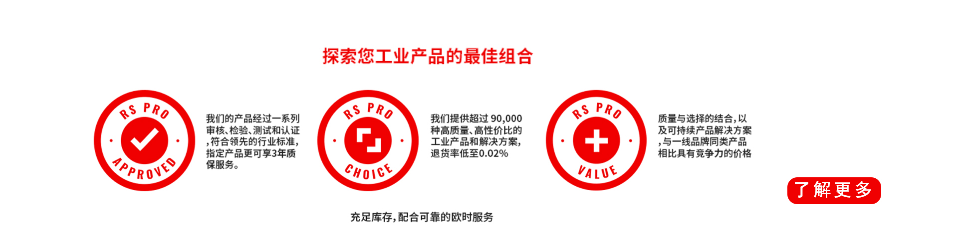 RS PRO 中文名称欧时电子。RS Pro 以电子元器件及MRO工业品供应商,闻名于世。RS可以提供2500多个制造商品牌,超过80万+种商品。 库存商品,最快当天发货。为工程师和采购人员提供专业的技术支持和一站式采购平台。同时RS PRO 也生产并提供超过90000种电子元器件和MRO工业品配件,帮助全球企业解决供应链难题,实现降本增效的目的。RS 诞生于伦敦西北部的一个上锁车库,1937 年它开始销售自己的产品,并于2016 年推出RS PRO 品牌,致力于为客户提供符合期待的质量与价格,以及日益增长的可持续产品和解决方案选择。RS中国2000年在上海成立,并于同年进入中国市场,经过20年的发展,成为中国领先的元器件和工业配件服务商,为中国科技进步做出不可磨灭的贡献。RS三大核心:质量、选择和价值RS PRO是欧时的自有品牌,为全球60多万客户提供超过 90,000种高质量、高性价比的工业产品和电子元件。RS PRO作为一个可以信赖的品牌,致力于为客户提供符合期待的